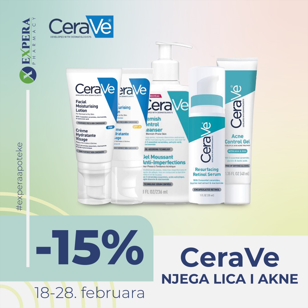 Detalji Objavljeno 18 februar 2023 18.02.2023. 11:50 Popust -15% na CeraVe asortiman - njega lica i akne