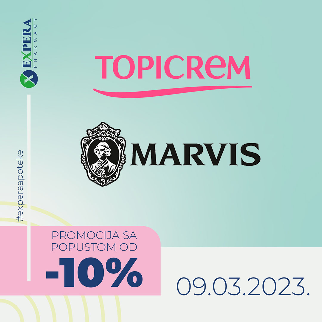Detalji Objavljeno 09 mart 2023 09.03.2023. 08:18 Snižena cijena -10% na kompletne asortimane Marvis i Topicrem