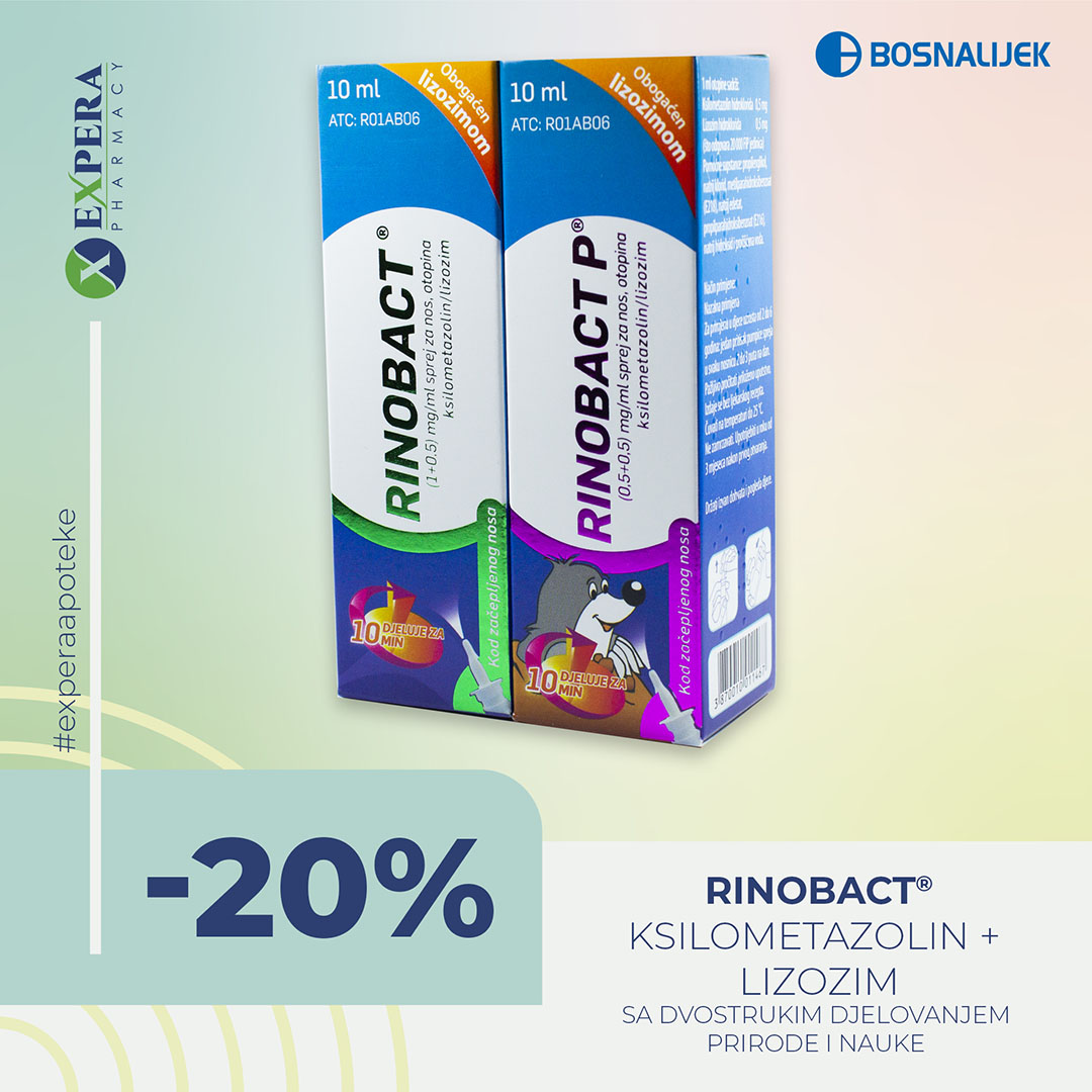 Detalji Objavljeno 10 april 2023 10.04.2023. 08:23 Popust -20% na Rinobact i Rinobact P sprej za nos u svim Expera apotekama
