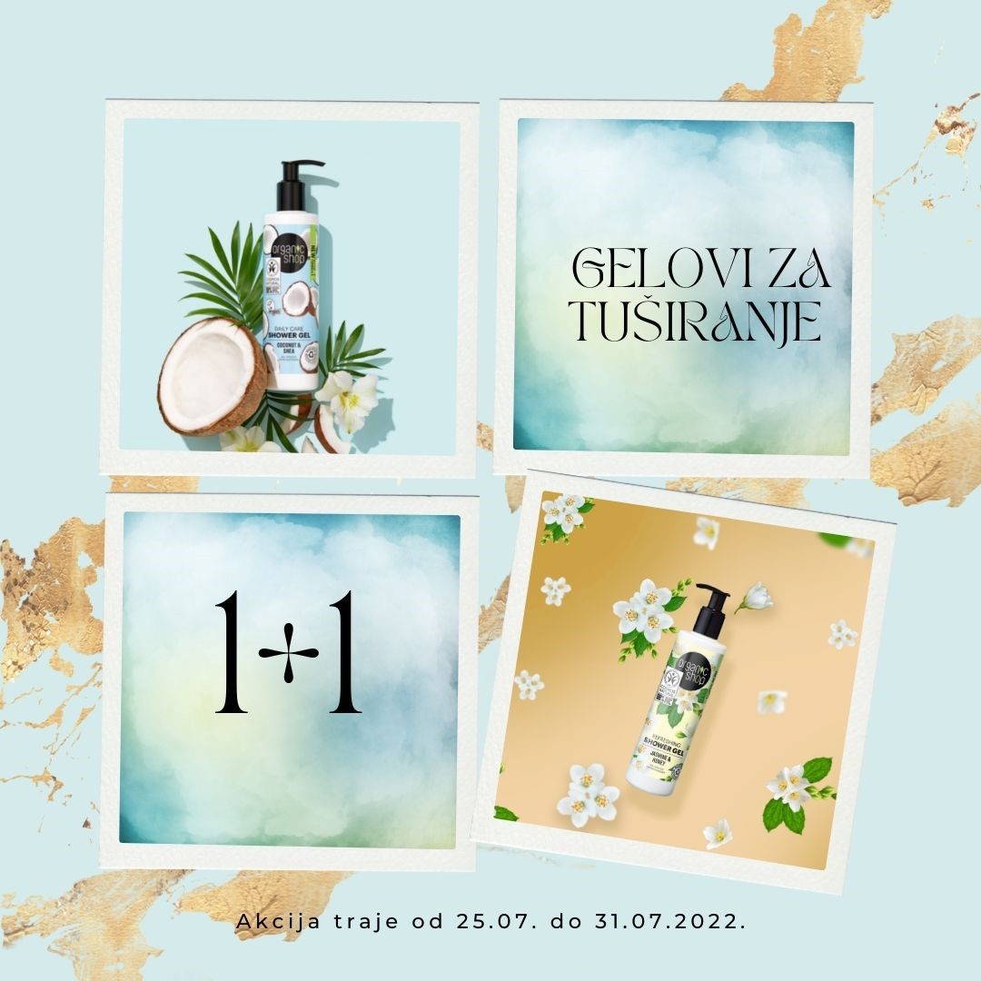 Detalji Objavljeno 26 jul 2022 26.07.2022. 08:44 Organic shop akcija do kraja jula - gelovi za tuširanje 1+1 GRATIS