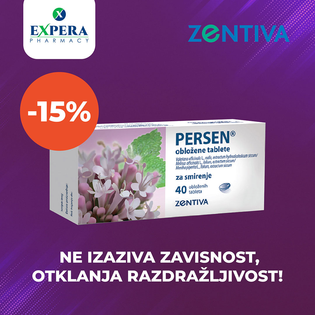 Detalji Objavljeno 26 jul 2022 26.07.2022. 10:42 Izdvojeno iz ponude :: popust -15% na Persen tablete za smirenje