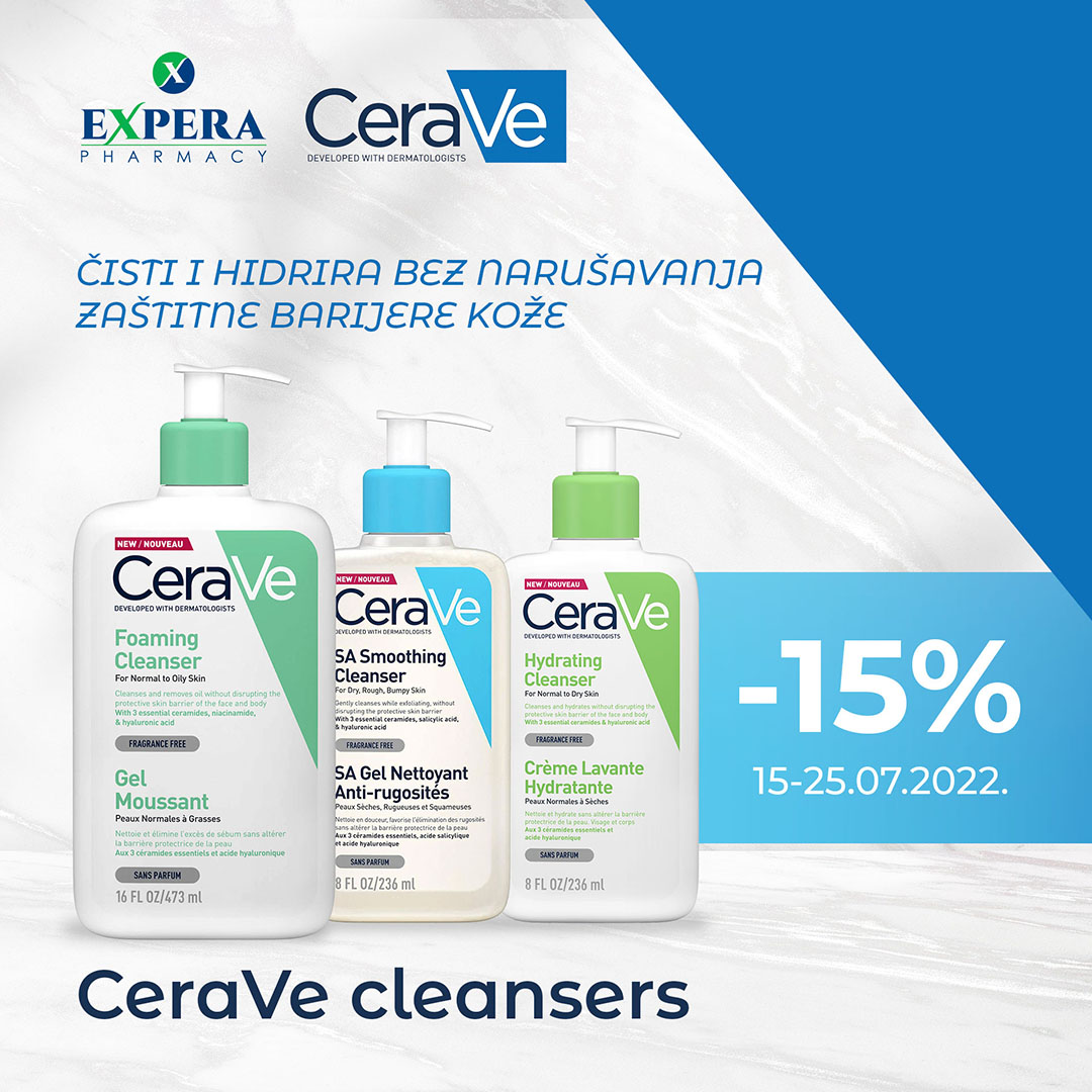 Detalji Objavljeno 13 jul 2022 13.07.2022. 05:46 Popust -15% na CeraVE peparate za čišćenje lica - CeraVe Cleansers