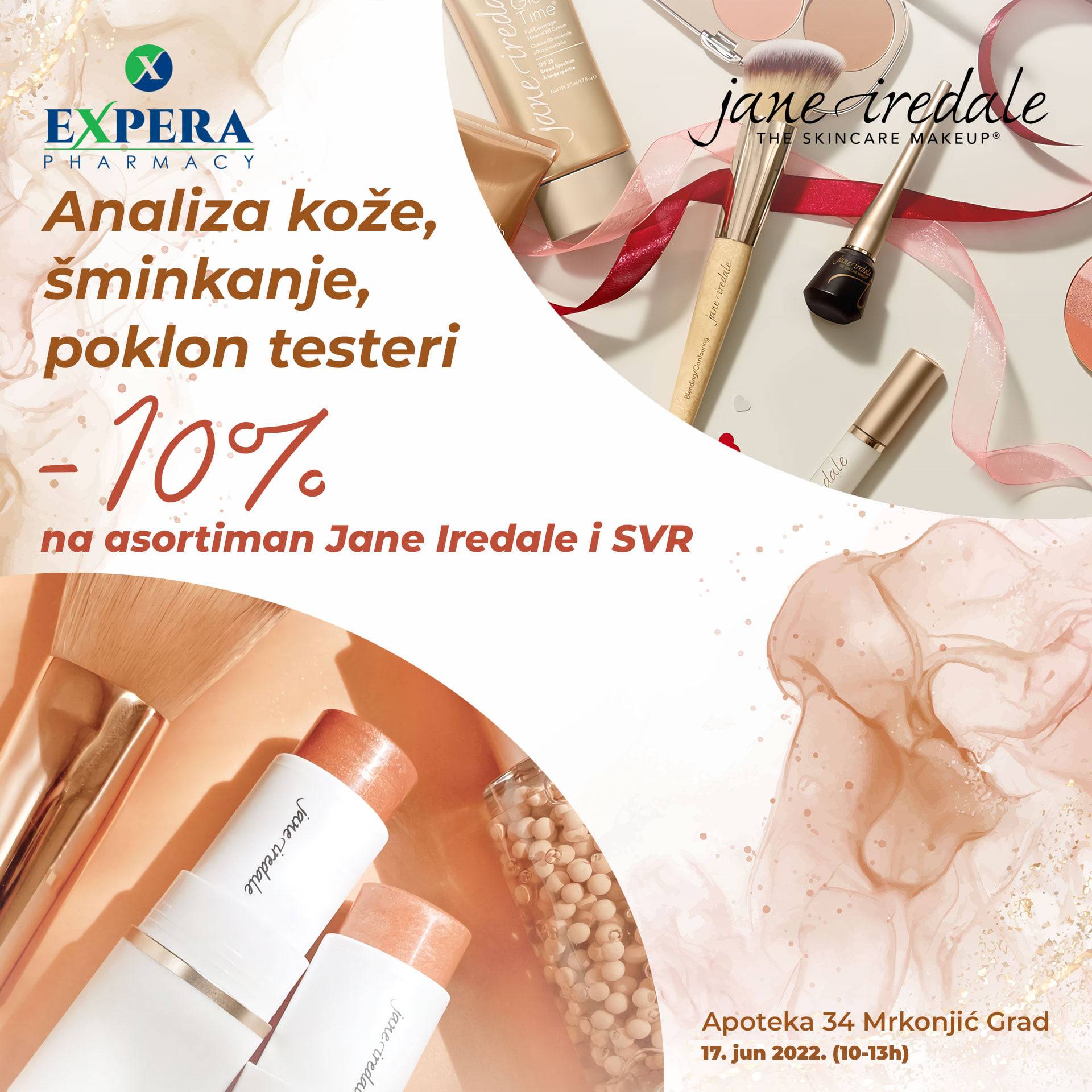 Detalji Objavljeno 16 jun 2022 16.06.2022. 19:52 Besplatno šminkanje Jane Iredale šminkom i popust 10% na Jane Iredale i SVR