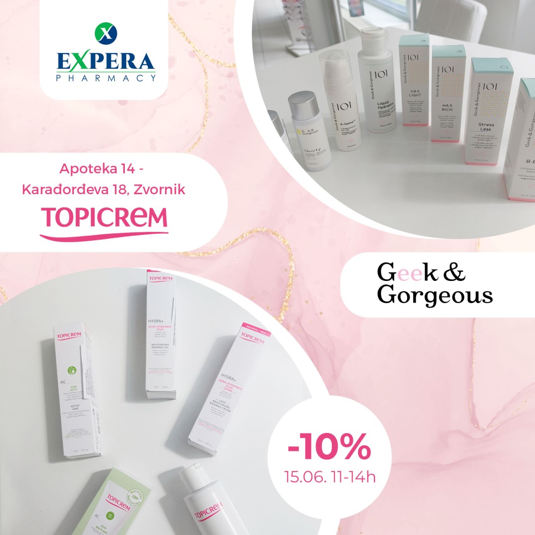 Detalji Objavljeno 14 jun 2022 14.06.2022. 20:43 Dermobar Topicrem & Geek and Gorgeus uz -10% popusta na Topicrem asortiman