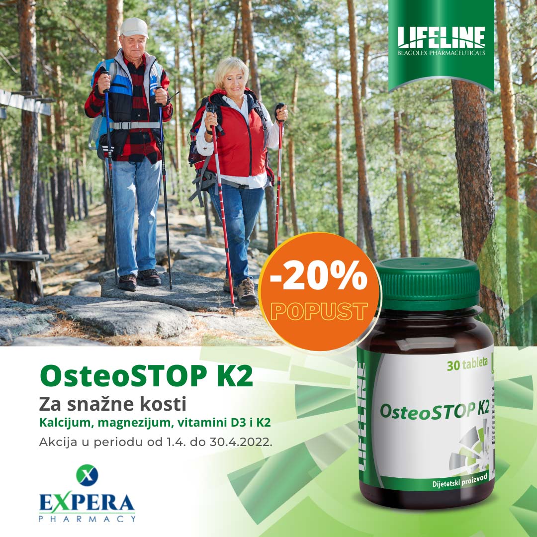Detalji Objavljeno 21 april 2022 21.04.2022. 06:37 Zdrave kosti, zdravo srce… Lifeline OsteoStop K2 na popustu -20%