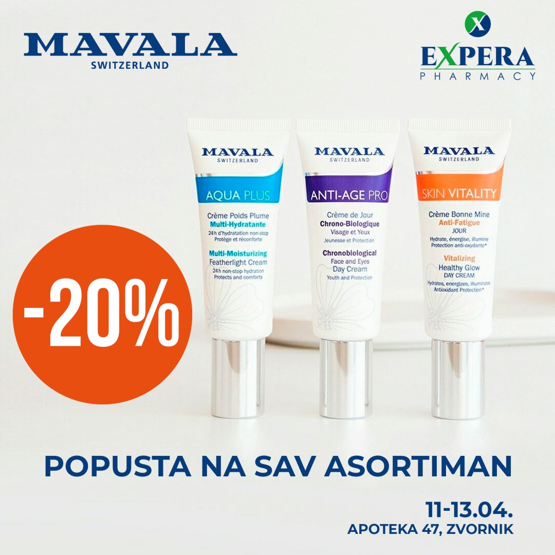 Detalji Objavljeno 09 april 2022 09.04.2022. 07:32 Popust -20% na kompletan Mavala asortiman u apoteci br. 47 /Zvornik/