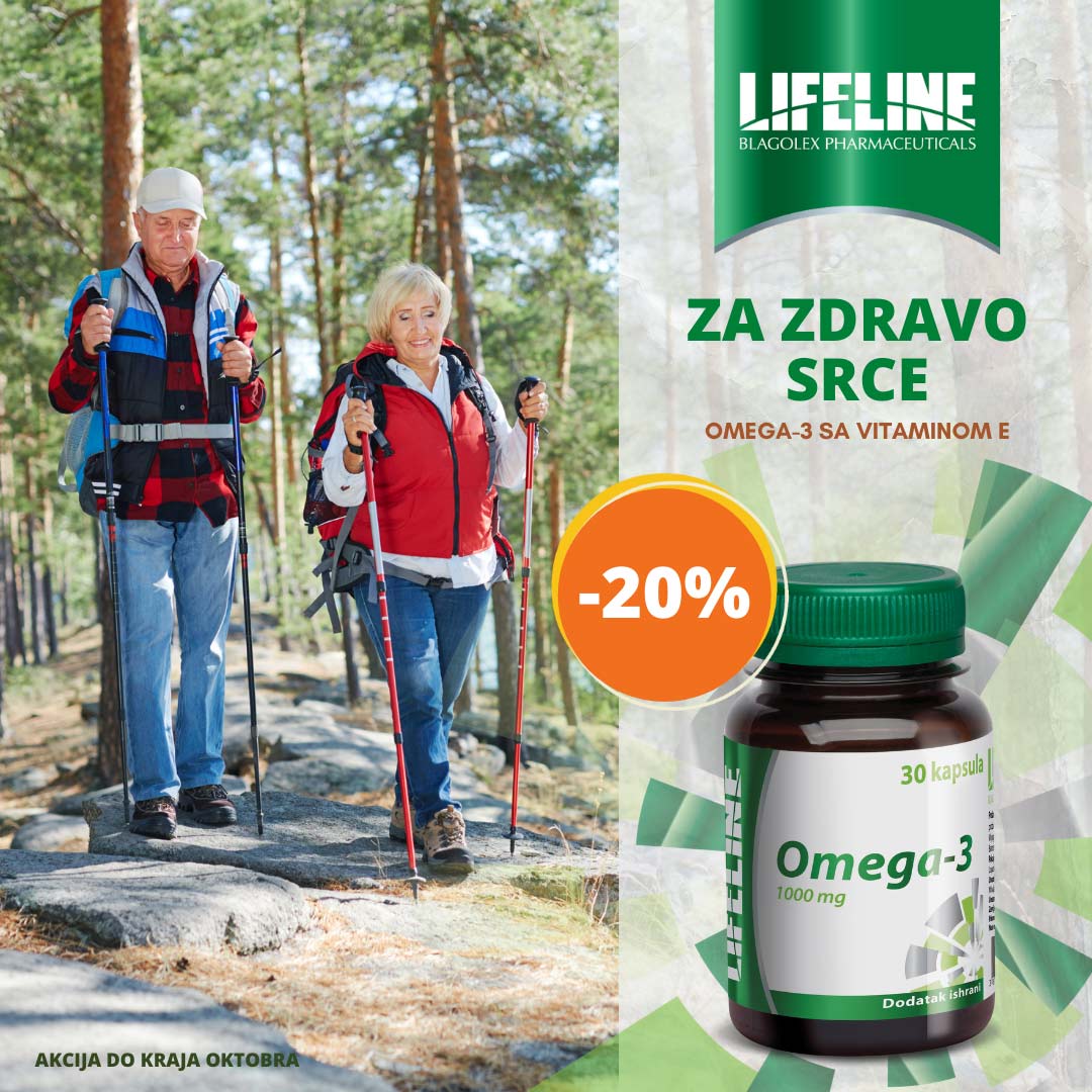 Detalji Objavljeno 14 oktobar 2021 14.10.2021. 18:28 Lifeline akcija :: popust -20% na Omega-3 i riblje perlice sa vitaminima A i D