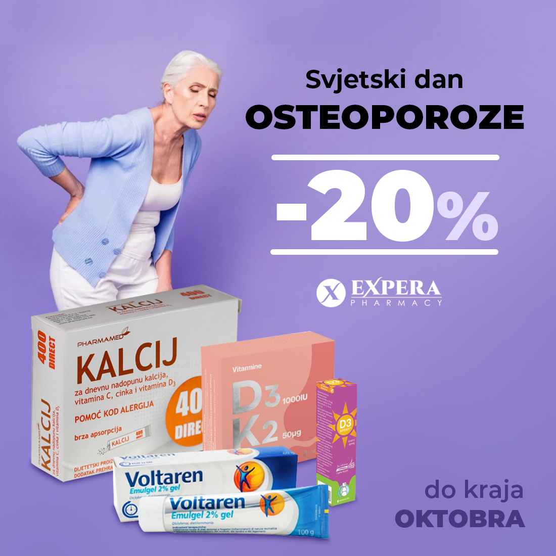 Detalji Objavljeno 20 oktobar 2021 20.10.2021. 08:05 Popust -20% na odabrane artikle povodom Svjetskog dana osteoporoze