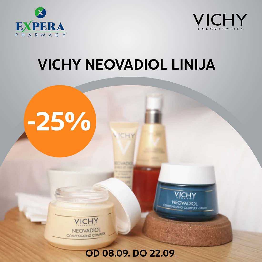 Detalji Objavljeno 07 septembar 2021 07.09.2021. 18:30 Vichy Neovadiol linija: - 25% popusta na kompletan asortiman