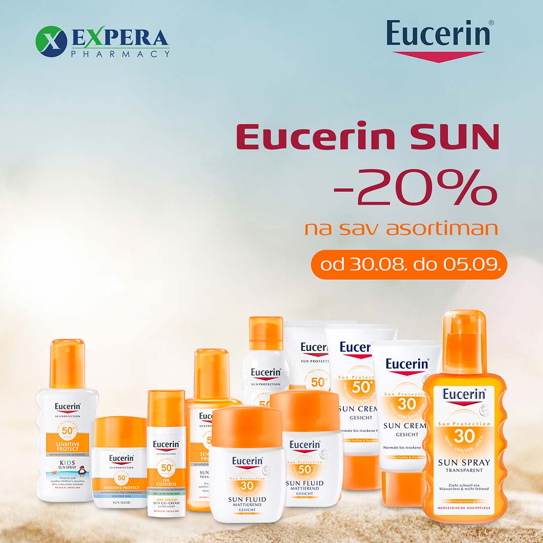 Detalji Objavljeno 30 avgust 2021 30.08.2021. 07:04 Sedmica popusta od -20% na kompletan Eucerin Sun asortiman, 30. avg - 05. sep