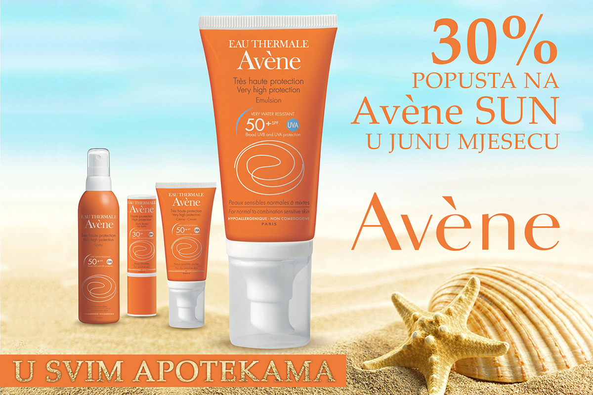 Detalji Objavljeno 04 jun 2020 04.06.2020. 19:56 Zaštita od sunca - 30% SNIŽENJE na Avene SUN asortiman u junu mjesecu